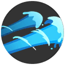 指定方向に0.2秒後に水を発射し、命中した相手のポケモンにダメージを与え、0.6秒間ふきとばし、1秒間移動速度を30%低下させる。水が半分の距離に達する前に当たった相手はフル距離ふきとばされ、半分を超えた位置で当たった相手は短距離のみふきとばされる。
