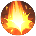 指定方向に炎を放ち、最初に命中した相手のポケモンまたは最大距離に達した地点で爆発する。範囲内の相手のポケモンにダメージを与え、4秒間やけど状態にする。