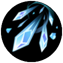 指定方向に短い距離をジャンプする。5秒以内の次の通常攻撃の射程が伸び、蓄えた氷のクリスタルをすべて相手に発射してダメージを与える。発射した数と同じ数のクリスタルを再獲得する。4個以上のクリスタルが命中すると、相手の移動速度を1秒間、1個あたり8%低下させる(最大6回まで重複)。氷のクリスタルがない場合、2個獲得する。