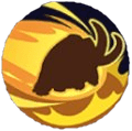 指定した方向に猪突猛進し、命中した相手にダメージを与えて0.55秒間ふきとばす。その後足踏みし、範囲内の相手にダメージを与えて0.35秒間行動不能にする。こおり状態の相手へのダメージが増加する。