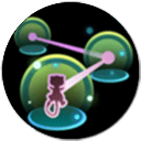指定方向に素早く移動し、ミュウの移動速度が2秒間5%上がる。2回分ストック可能で、2秒に1回以上は使用できない。