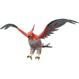 強化攻撃を準備し、最大3秒間空に飛び上がって攻撃対象にならなくなる。移動速度が65%上がる。もう一度使うか3秒後に指定した場所に急降下し、範囲内の相手にダメージを与える。相手チームのポケモンに命中すると、このわざの現在の待ち時間が40%短縮される。