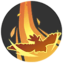 炎をまとって指定方向にダッシュし、経路上の相手のポケモンにダメージを与える。命中すると移動速度が2.5秒間30%上がる。