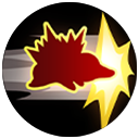 指定方向に突進し、相手のポケモンにぶつかってダメージを与え、1秒間移動速度を30%低下させる。自分にシールドを2秒間付与し、その後強化攻撃が準備される。命中するとげきりんゲージが2溜まる。げきりん最大時はスロウの代わりに相手を0.5秒間行動不能にする。