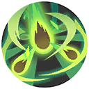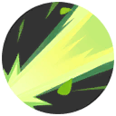 指定方向に鋭い葉っぱを連射し、0.75秒間に10回ダメージを与える。